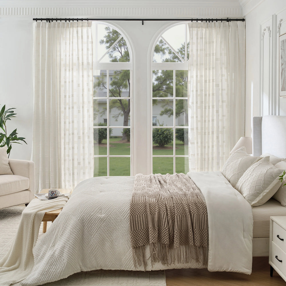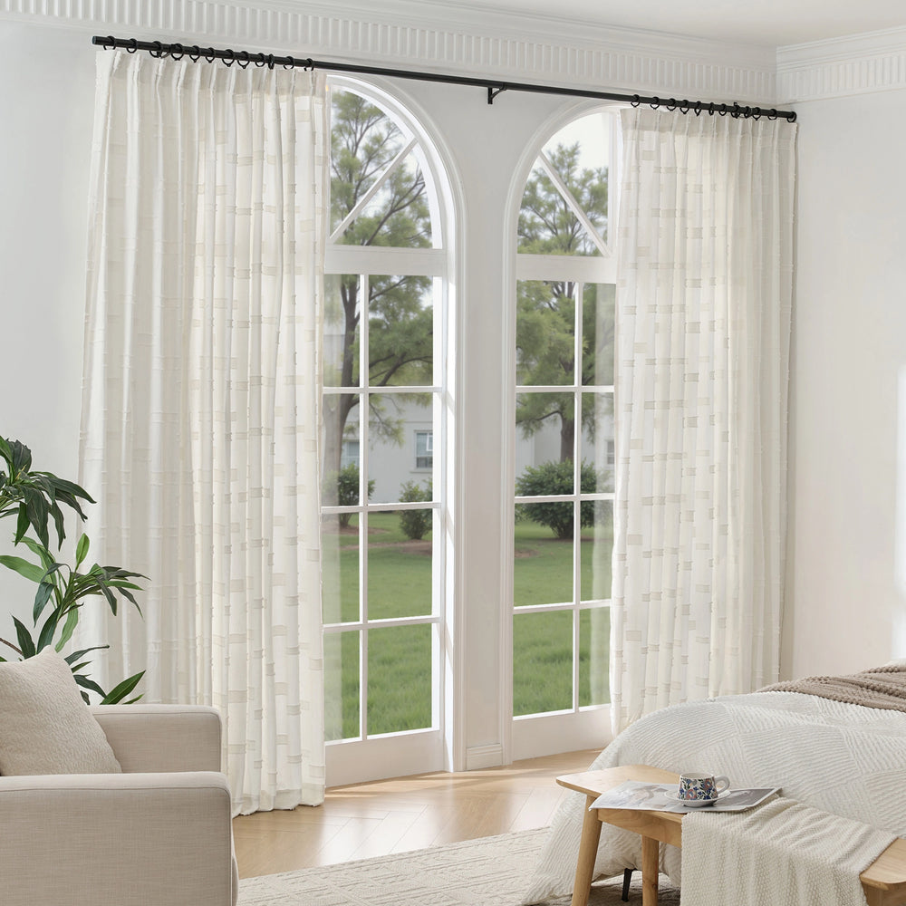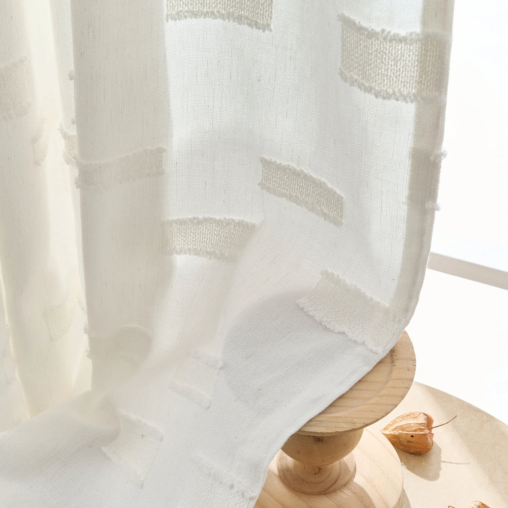 Solace Off-White Raised-Weave Semi-Sheer Curtains