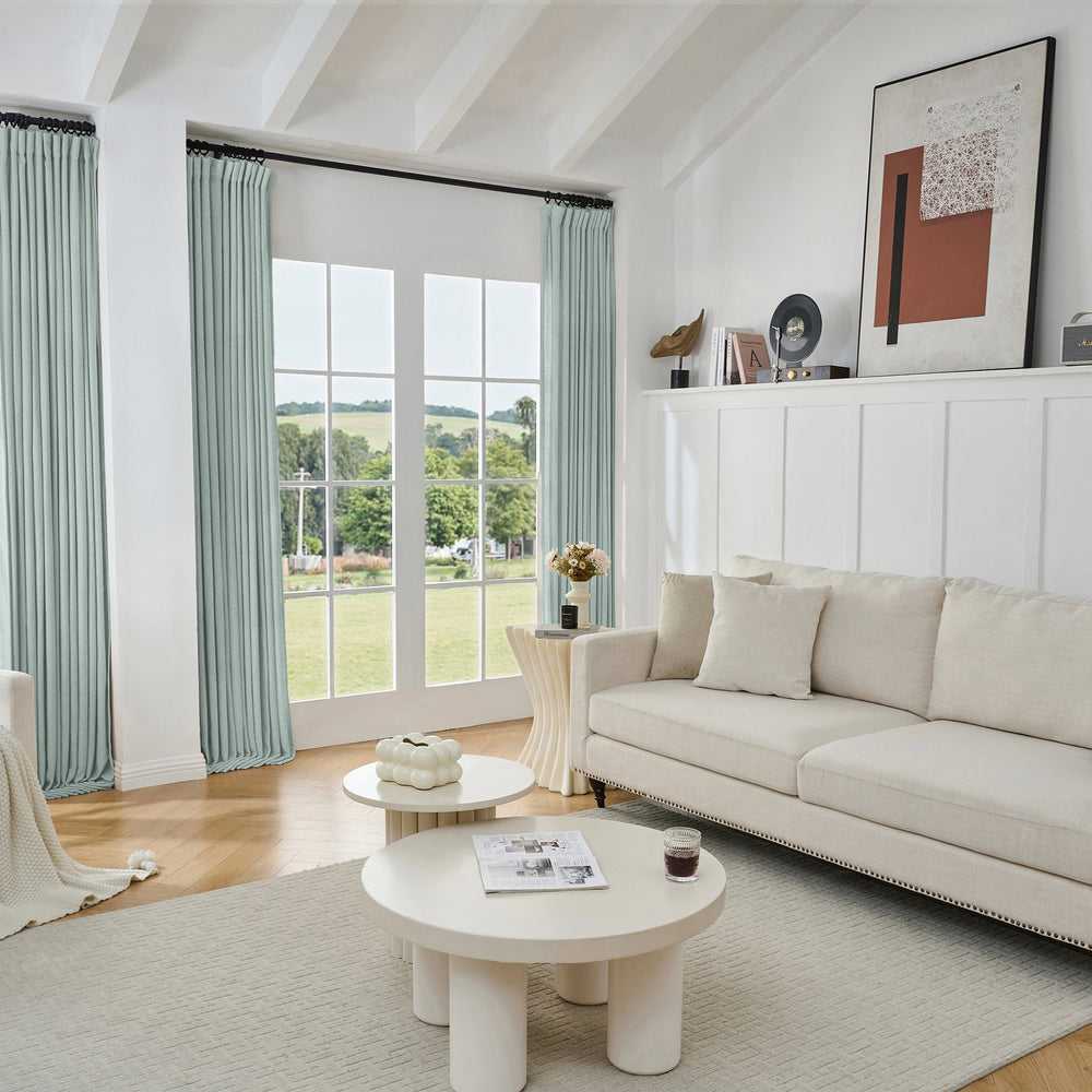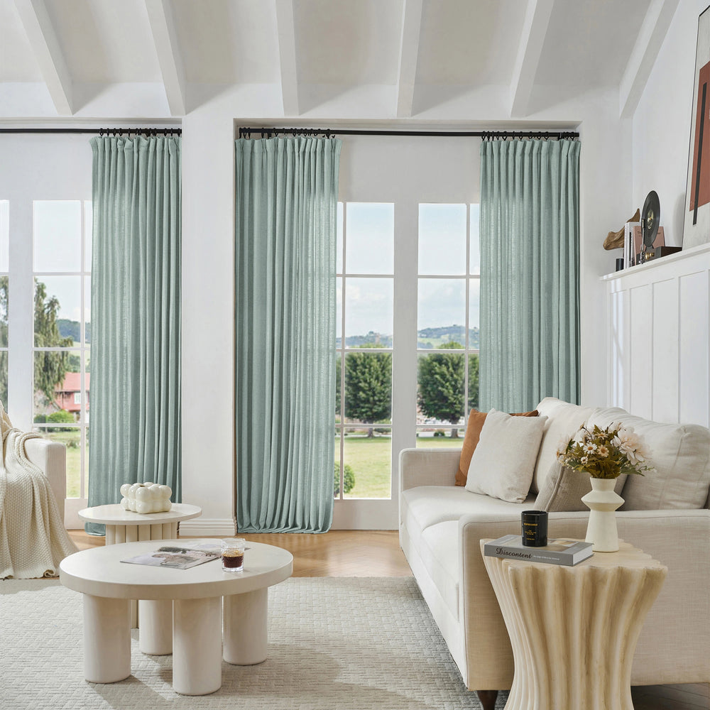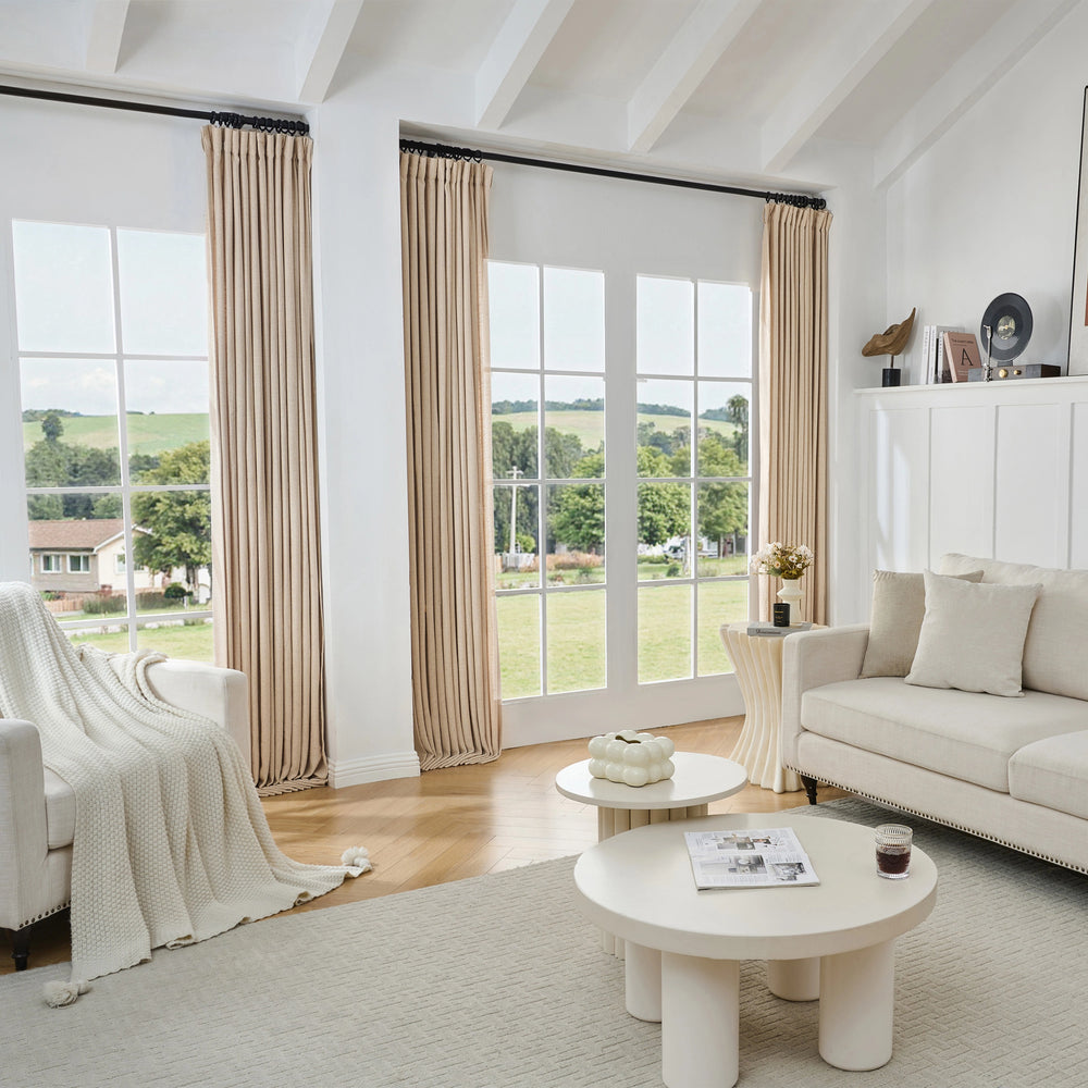 Measure the length of your curtain rod (or the inside window width for inside-mount). Choose your preferred drape length: Above Floor (½"), Kiss Floor, or Puddle (2"). This ensures a perfect fit for your custom or ready-made curtains.