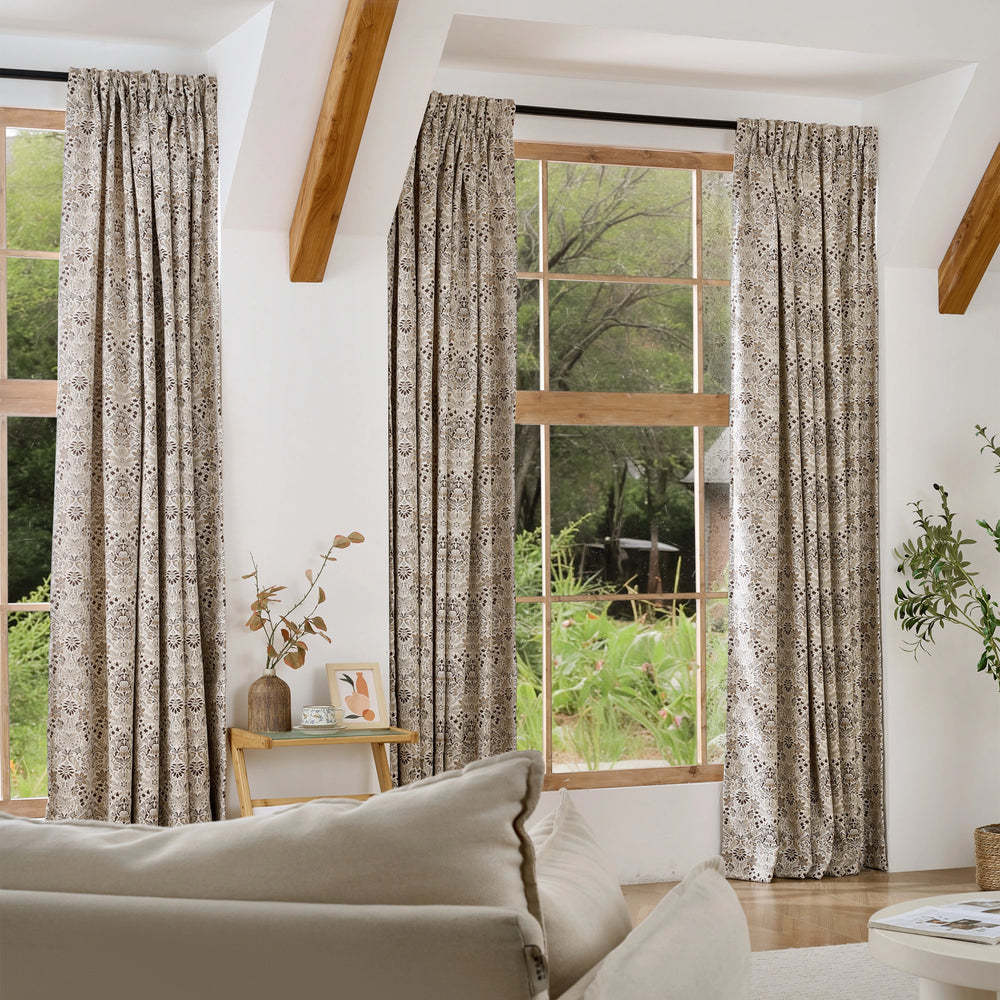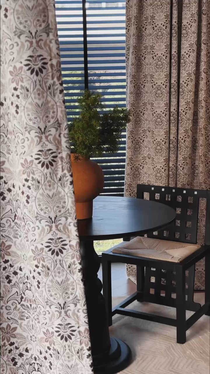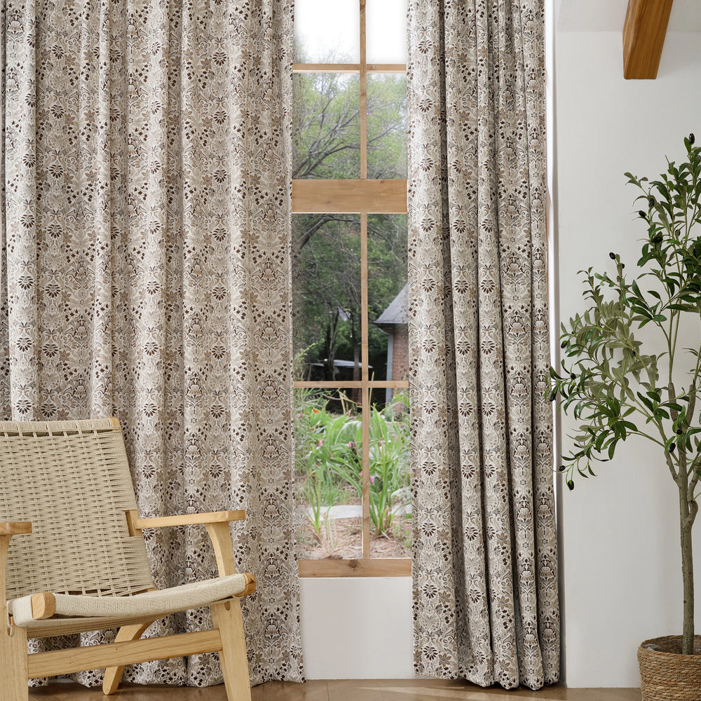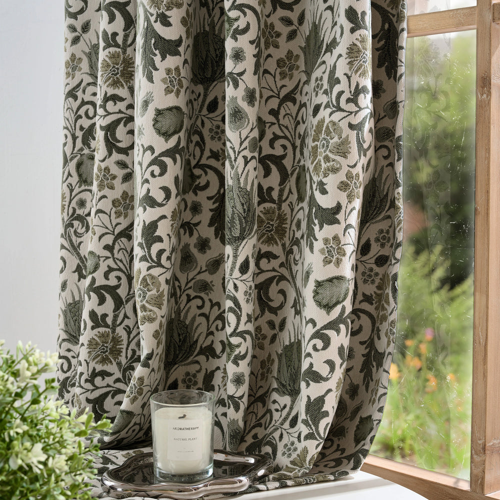Elowen Olive Mocha Botanical Weave Floral Curtains
