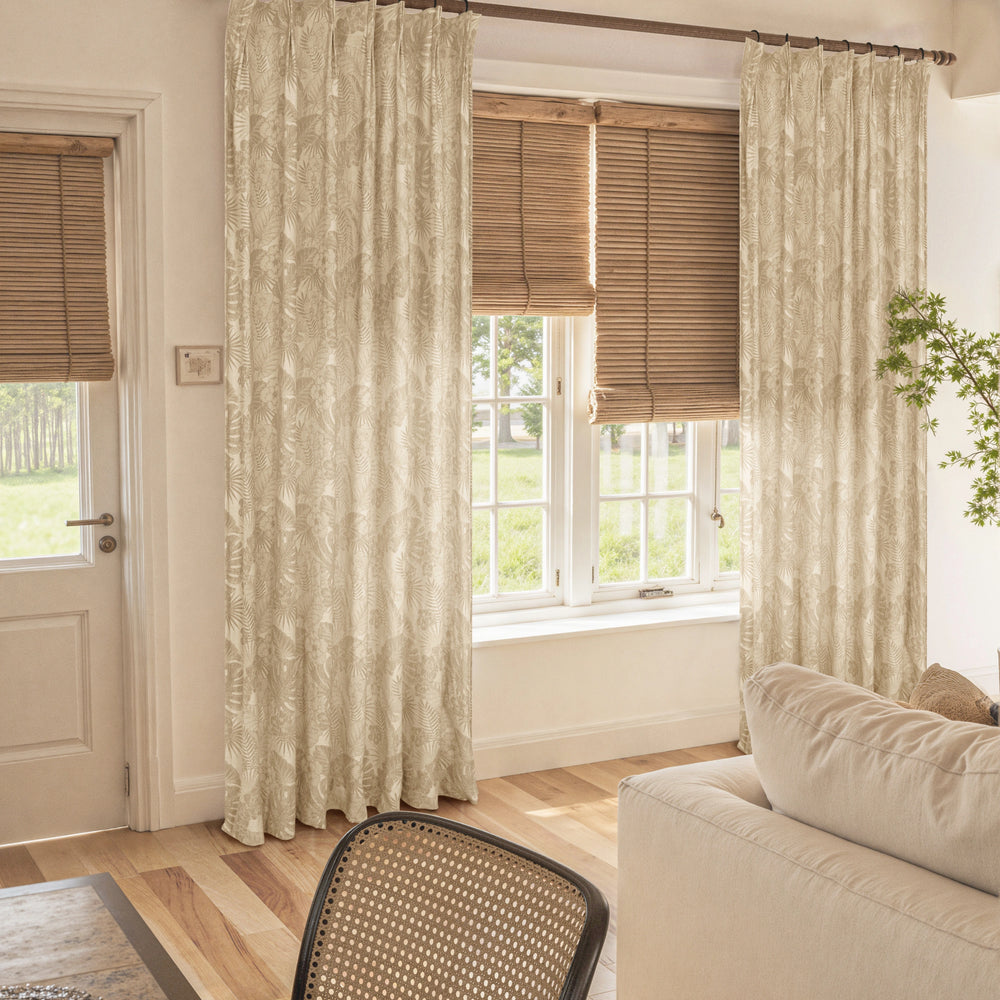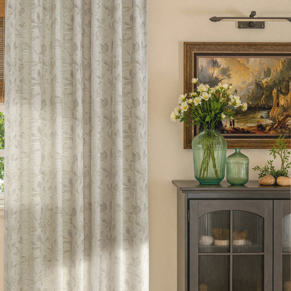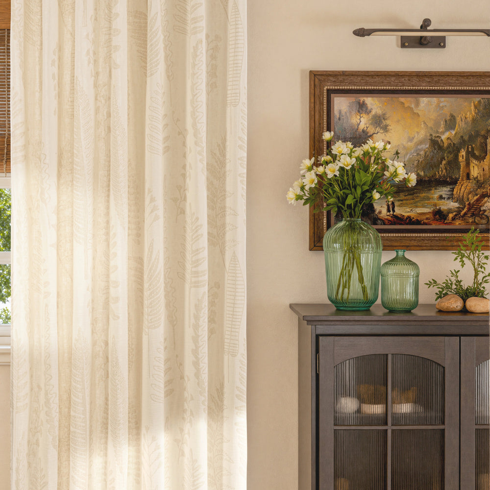 Mistora brings a quiet botanical presence into your space, woven from a breathable cotton-linen blend with a softly layered leaf motif. Light filters through gently, creating depth without heaviness and a sense of calm that feels natural rather than styled. The texture is relaxed yet refined, ideal for living rooms, bedrooms, or sunlit spaces that value warmth and ease. Designed to age beautifully, Mistora feels effortless, lived-in, and timeless.