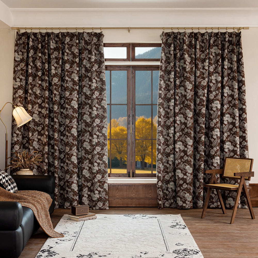 Seraphine Mocha Paisley Floral Vintage Curtains